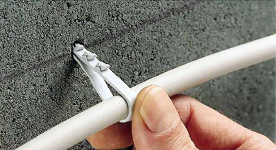 Использование клипс или скоб для крепления проводов подходит только для монтажа электропроводки в пластиковых трубах ПВХ или в гофрированной трубке. Железные скобы применяют когда необходимо закрепить тяжелый участок, т.к. клипса может не выдержать.