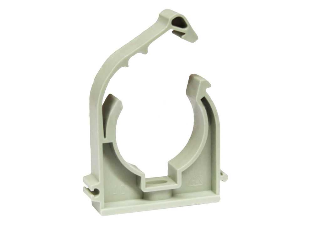 Клипса представляет собой пластиковую разновидность хомута. Но, в отличие от него, может быть открытой, а крепление короба обеспечивается за счет упругости материала клипсы.