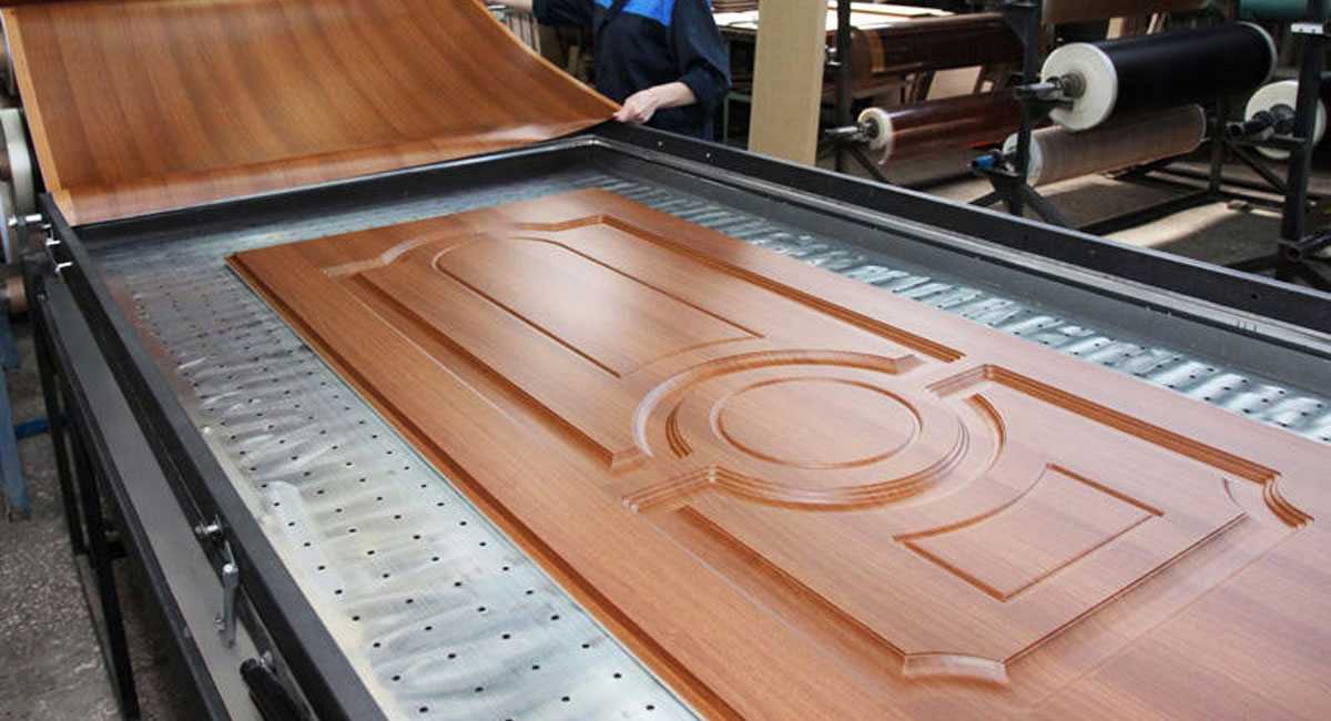 Мембранное шпонирование производится на сложных рельефных поверхностях. И базируется на вакуумном соединении гладких и рельефных плит и шпона