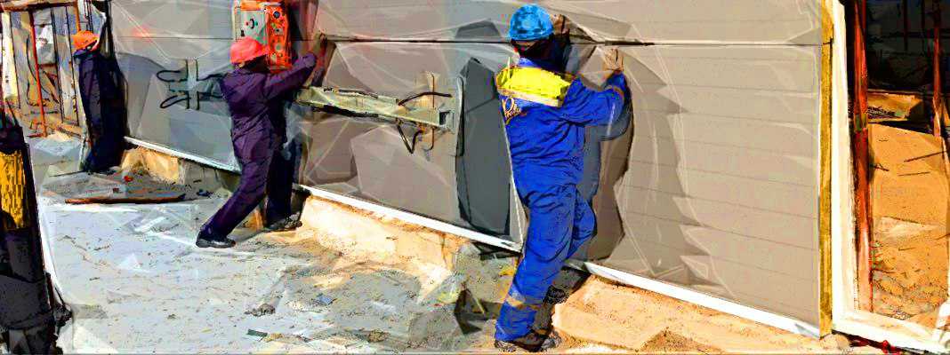 Обшивку подымают с помощью грузоподъемников, используя либо механический захват, либо вакуумные присоски. Второй вариант подходит практически при любом способе монтажа.