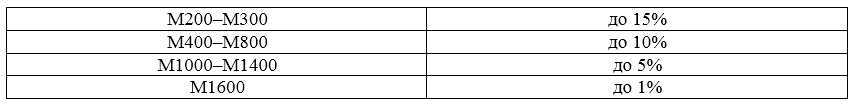 - М 1000/1200/1400 – не больше 5% слабой породы.