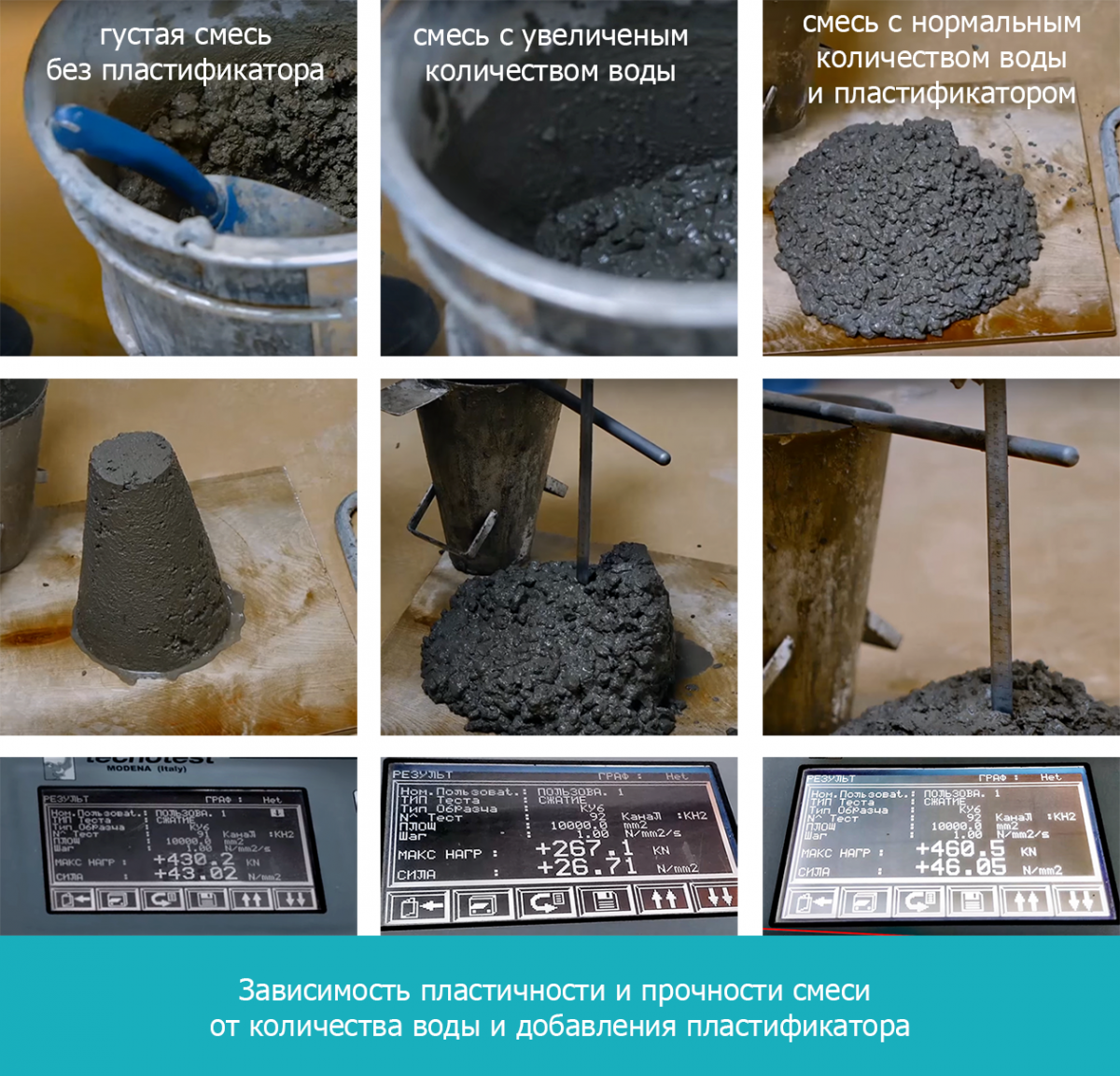Пластификаторы испытаны в лаборатории, их точная дозировка рассчитана. Они не оказывают негативного влияния на арматуру и не провоцируют появление высолов на поверхности бетона.
