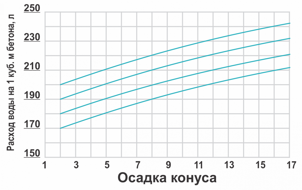Представим себе бетонные растворы с разным содержанием воды. Густой раствор с низким водоцементным соотношением держит форму и не растекается. Чем выше водоцементное соотношение, тем выше текучесть раствора. Таким образом, основной фактор, влияющий на подвижность бетонной смеси — пропорции воды к цементу.