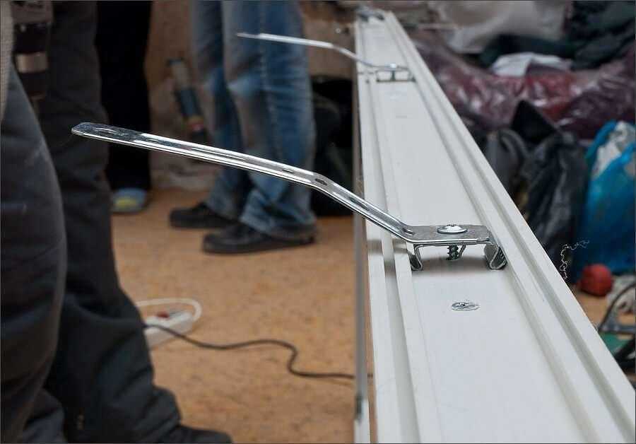 Монтаж устройства довольно простой: одной стороной его закрепляют на торцевой части рамы, а другая прикручивается к основанию обычным шурупом длиной 50-80 мм.