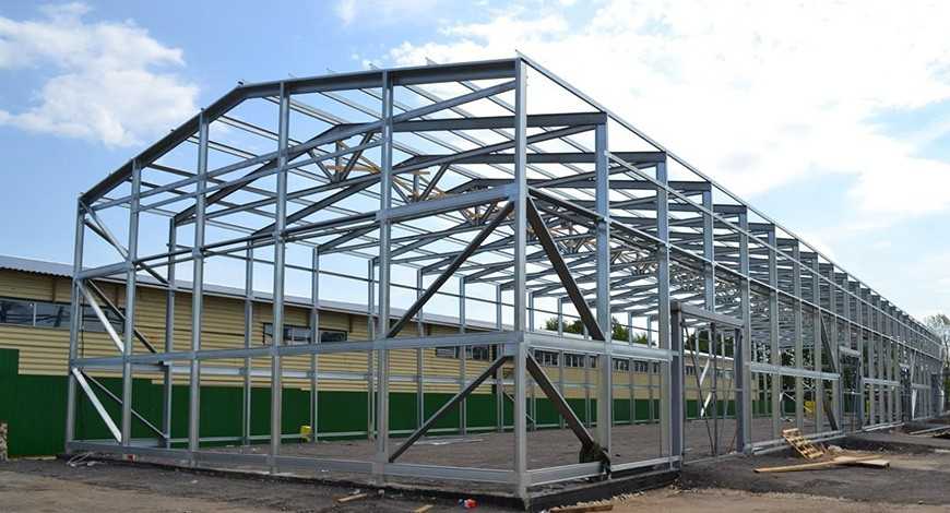Каркас строения может представлять собой квадрат или прямоугольник с возможными вертикальными стойками по центру для придания жёсткости конструкции. Сначала собирается и крепится нижний пояс, затем монтируются стойки на углах, в местах будущих ворот (по бокам), а также по всему периметру не реже, чем с шагом в 3 м.