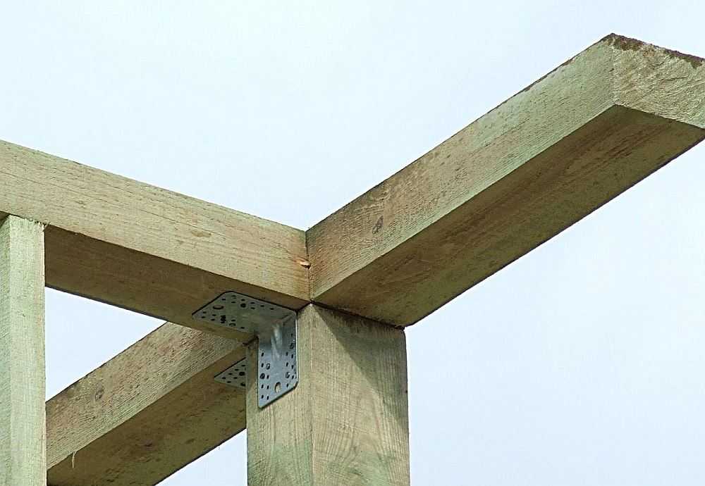Для стоек на прямых участках подойдет брус с меньшим сечением – 50х100 мм. Его соединение с обвязкой выполняют путем полной, неполной вырубки или с помощью стальных уголков. Здесь можно использовать крепежные элементы без усиления.