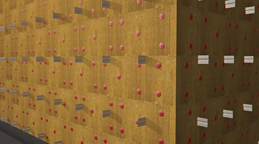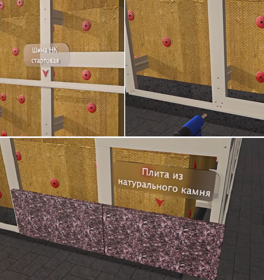 Поскольку форма камней относительно правильная, их стремятся установить как можно ближе друг к другу. Тем самым минимизируют швы. На фасадных профилях имеются специальные тонкие пластины, которые отгибают после установки камней. Таким образом обеспечивается дополнительное крепление облицовочного слоя.