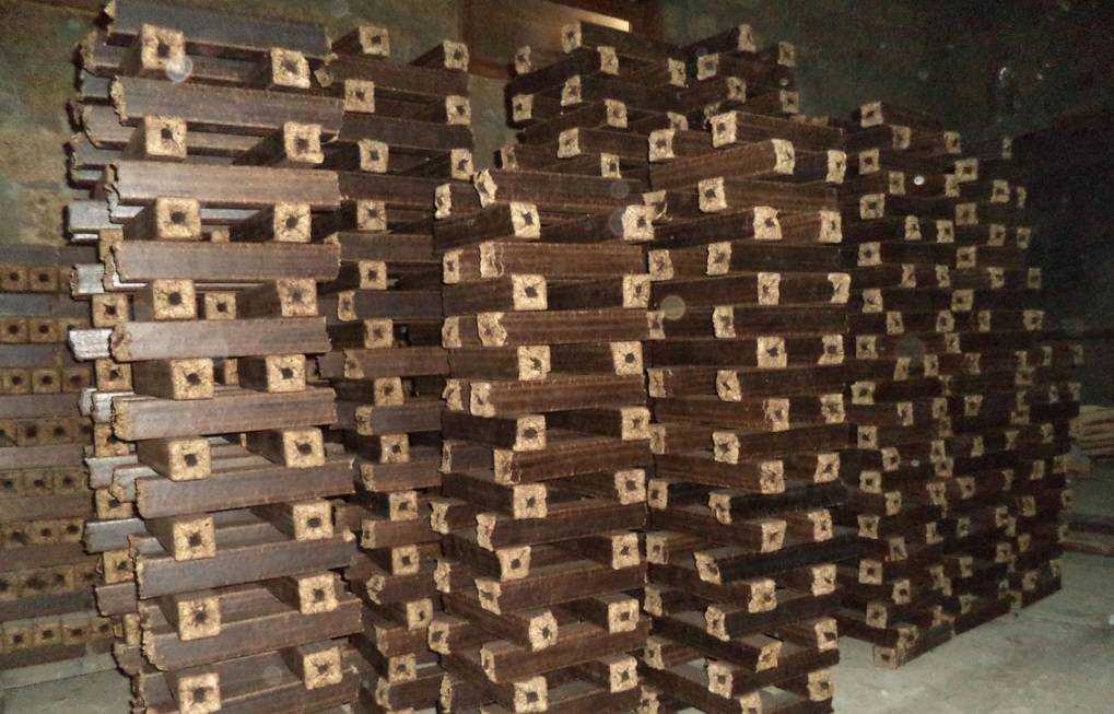 В продаже присутствуют и самые простые топливные брикеты для топки печей – в виде цилиндров. Они изготавливаются из прессованных опилок и мелких отходов деревообработки. Все это прессуется под небольшим давлением с использованием нетоксичной клеевой основы, после чего готовые бруски отправляются к потребителям. Это топливо отличается дешевизной, но обладает одним выраженным недостатком – низкой прочностью. Оно легко распадается и крошится, не выдерживает воздействия влаги.
