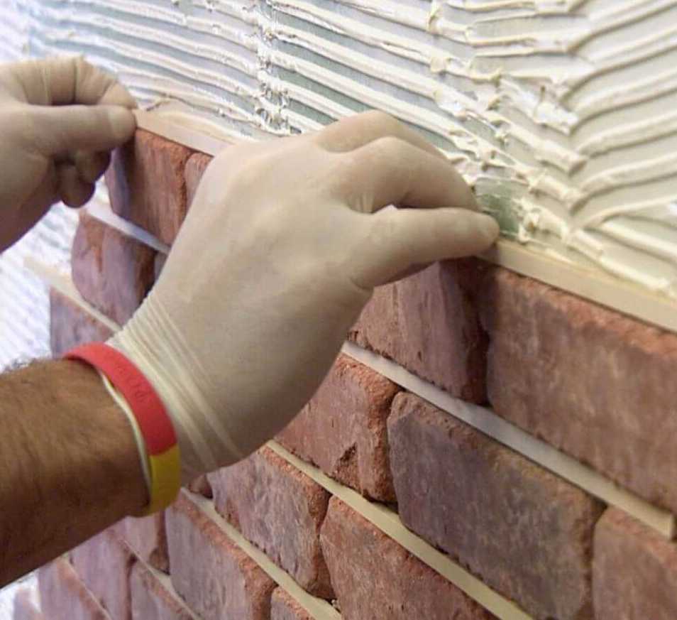 Обязательно должен быть слой гидроизоляции, чтобы предотвратить проникновение влаги и разрушение фасада. Если на основании есть непрочные места, которые осыпаются, их удаляют. Все неровности выравнивают с помощью штукатурки не позднее, чем за 3 суток до начала укладки.