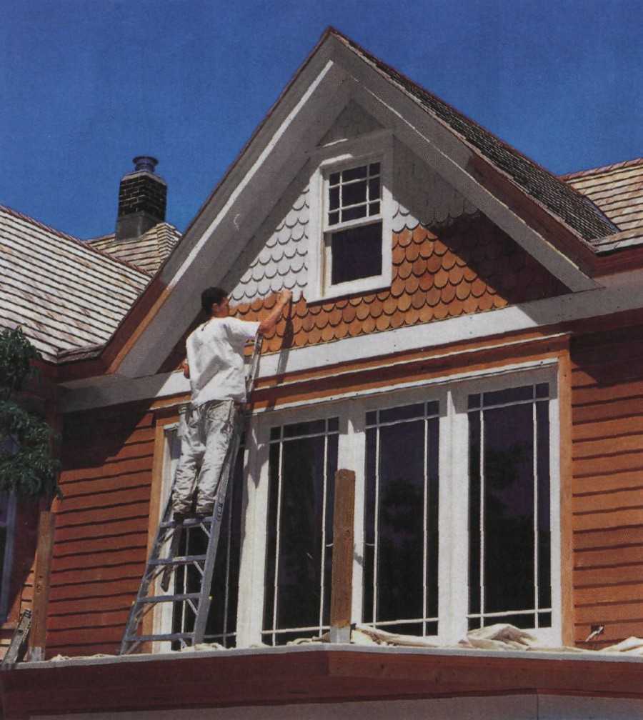- перед нанесением полезно протестировать цвет краски на небольшом участке поверхности где-нибудь с задней стороны дома;