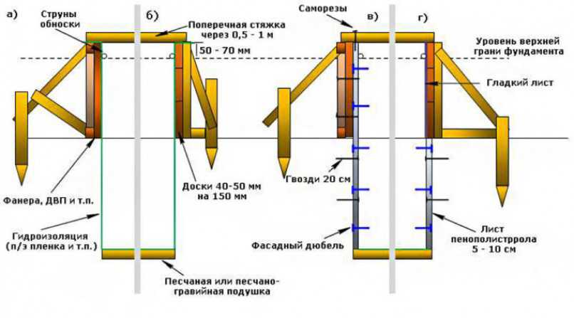 Элементы опалубки ленточного фундамента с размерами