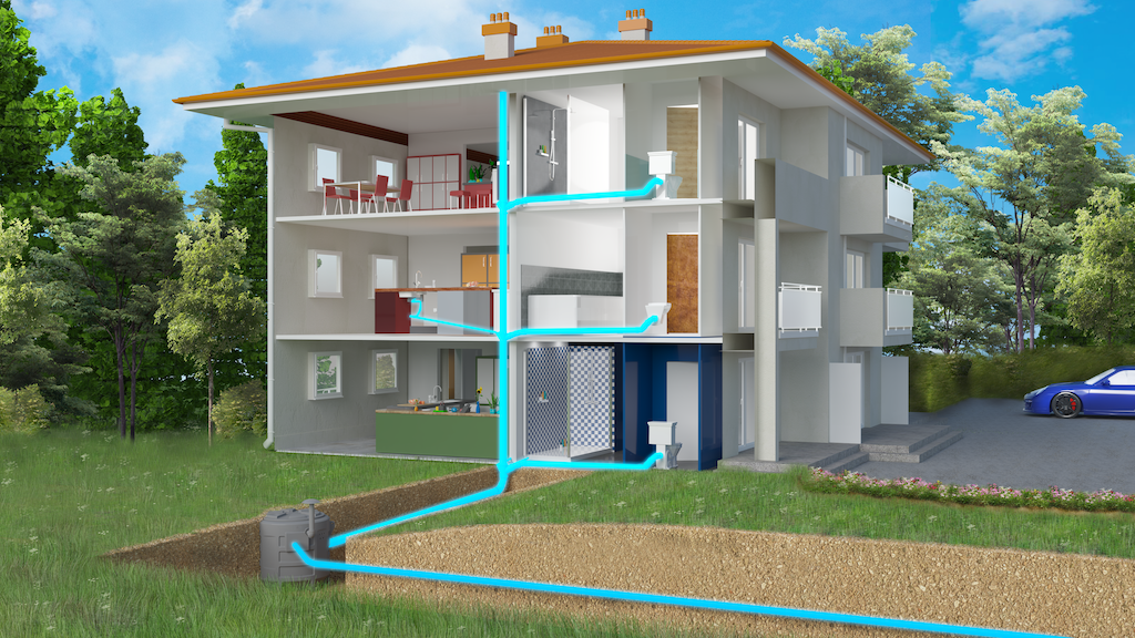- Разместить приборы, требующие дренажной системы, ниже уровня обычного стока в квартире (например, в подвале).