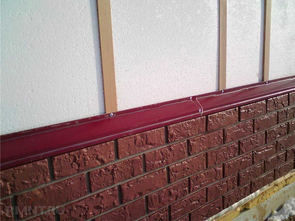 Ее положение проверяется по уровню. Данный элемент располагается по всему периметру здания, причем нужно следить, чтобы все части образовывали одну линию. Крепится планка саморезами, при этом для компенсации температурного расширения (особенно в случае металлической обрешетки) их не закручивают до конца, оставляя зазор примерно в полтора миллиметра