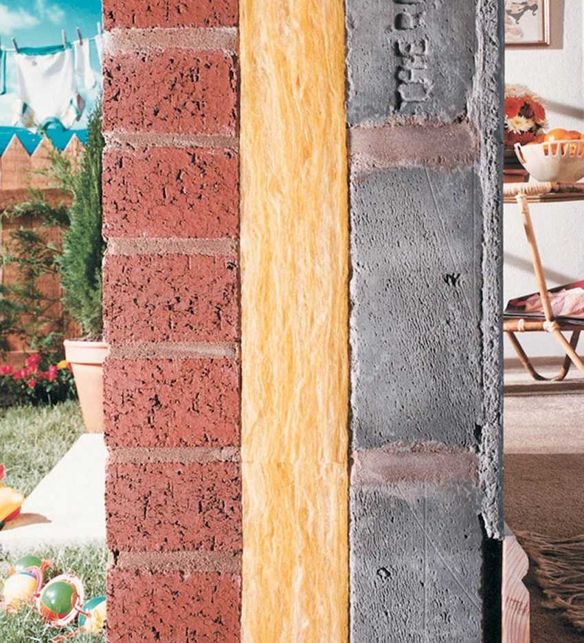 - устроить стены из трех невентилируемых слоев. Утеплитель закрепляется с помощью раствора. Затем оставляется небольшое воздушное пространство и возводится наружная стена толщиной в один кирпич;