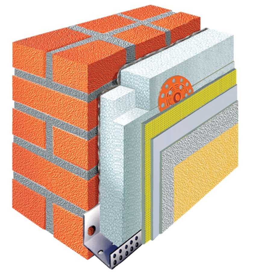 - можно приклеить изоляционный материал на фасадную стену с помощью специального клея с последующей отделкой стен штукатуркой («мокрый фасад«);