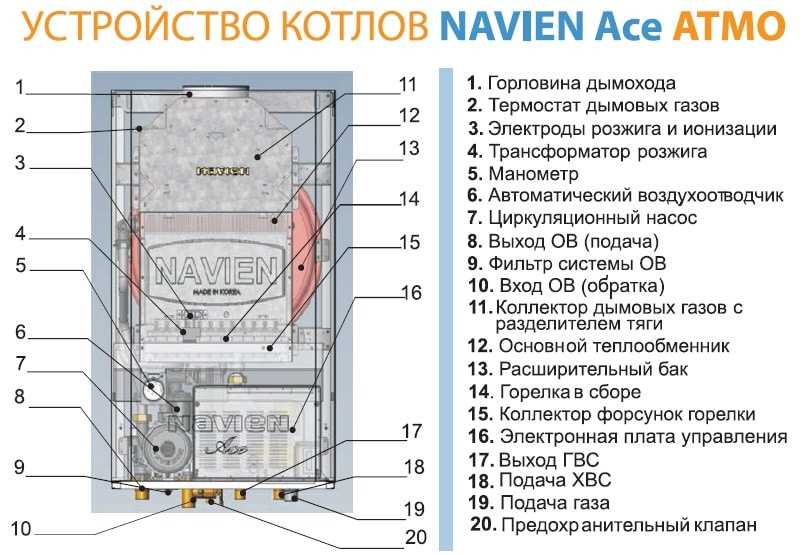 Работа котлов Навьен основана на тех же принципах, как и у аналогичных устройств других производителей.