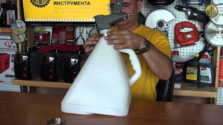 Для смеси применятся емкость довольно большого размера, что позволяет работать, не отвлекаясь на приготовление раствора, дольше.
