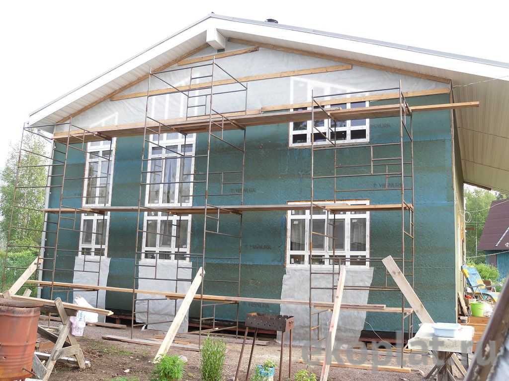 - Ремонт и улучшение деревянных и каменных домов. Обновить старый каменный или деревянный дом можно при помощи ветрозащитной обшивки, при этом удаляется слой старой декоративной отделки, укладывается ISOPLAAT, а поверх него – внешняя отделка типа сайдинга или вагонки. В такой ситуации улучшается звуко- и теплоизоляции.