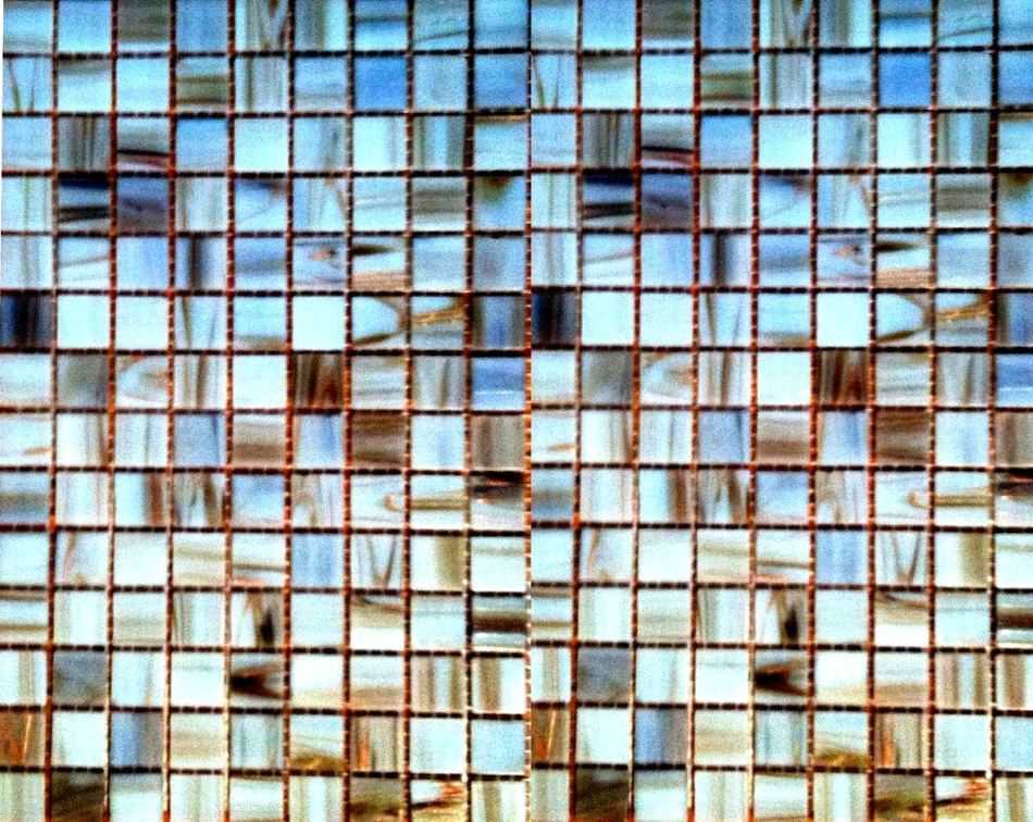 Облицовку стен мозаикой можно разнообразить применением матриц, различающихся не только по цвету, но и по материалу чипов. Кроме того, при компоновке такой отделки можно из блоков стандартного размера своими руками вырезать фрагменты любой формы, подрезая при необходимости не только основу, но и чипы. Таким способом можно облицевать стены разными матрицами в шахматном порядке, меняя и чередуя цвет, материал и размеры квадратов или прямоугольников.