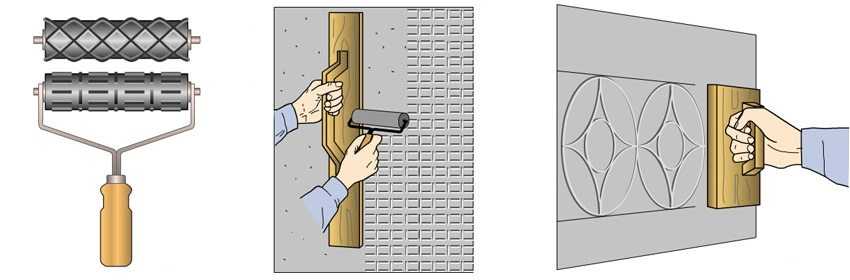 Подобрать состав для последующего нанесения на него рельефа довольно просто. Разберем, как сделать смесь «под валик», трафарет и любое другое приспособление.