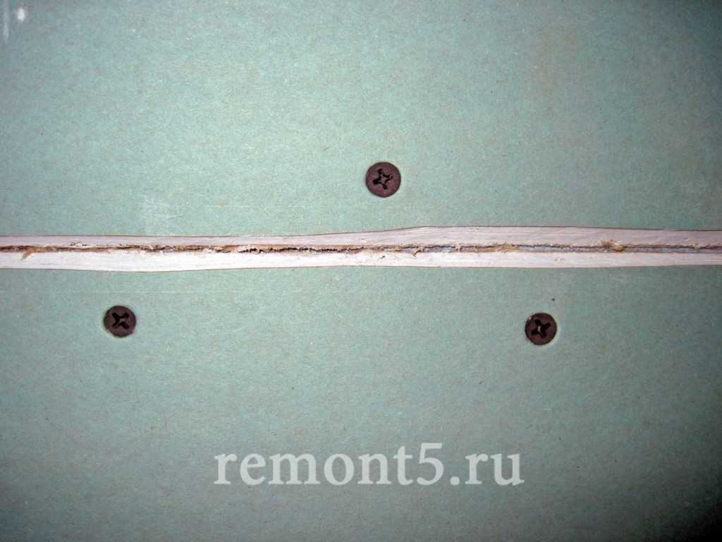 - Лист, примыкающий к стене, должен отстоять от нее на несколько миллиметров. Четко выраженный шов, заполненный и распертый шпаклевкой, уменьшит вероятность появления трещин.