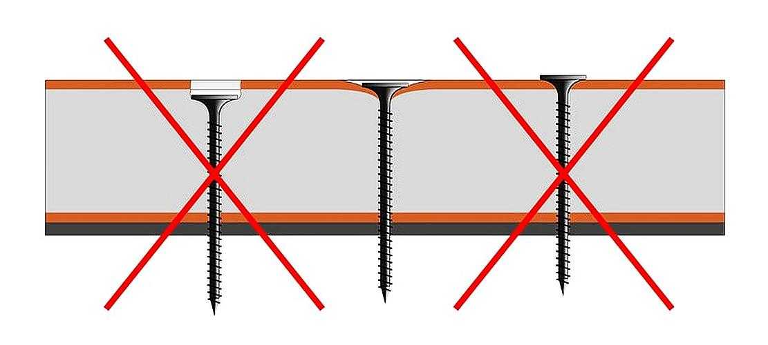 - Закрутить все саморезы, чтобы они не выступали над поверхностью.