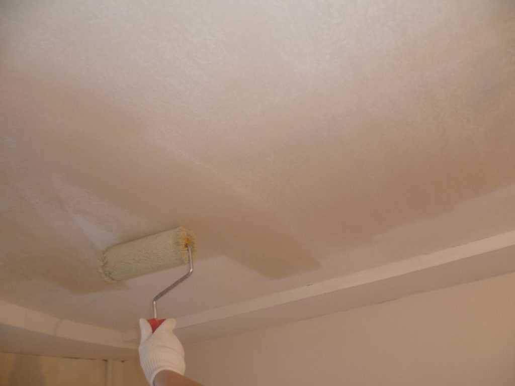 - Не рекомендуется обрабатывать валиком те участки потолка, на которых начала подсыхать краска.