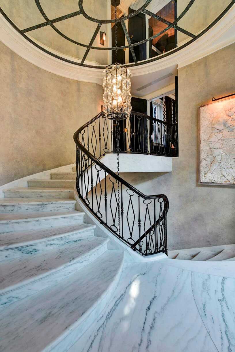 Мраморная лестница с коваными перилами