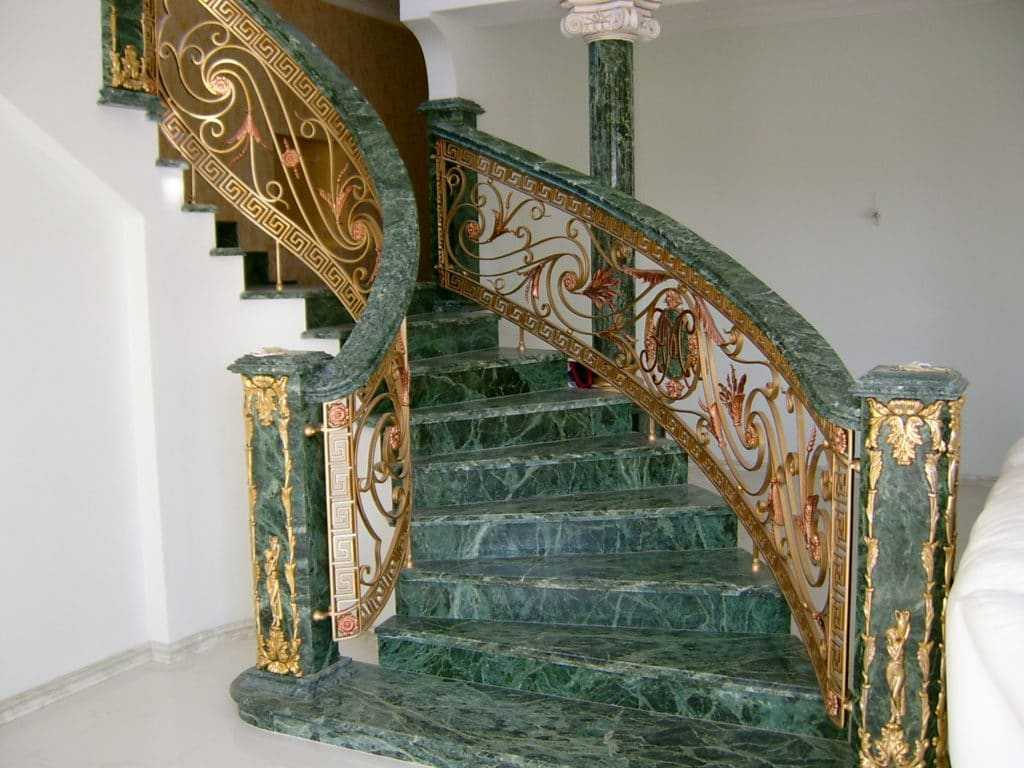 Зеленый мрамор в отделке ступеней и перилИсточник sevparitet.ru