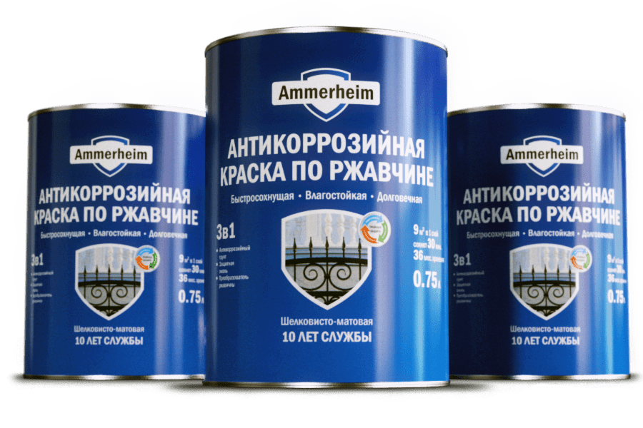 | Hammerite | Наиболее дорогостоящая продукция – до 900 рублей за литр. В линейке производителя представлены различные лакокрасочные материалы по металлу для использования в разных условиях. Краски имеют высокую степень сцепления с основанием, быстро сохнут и не имеют запаха. |