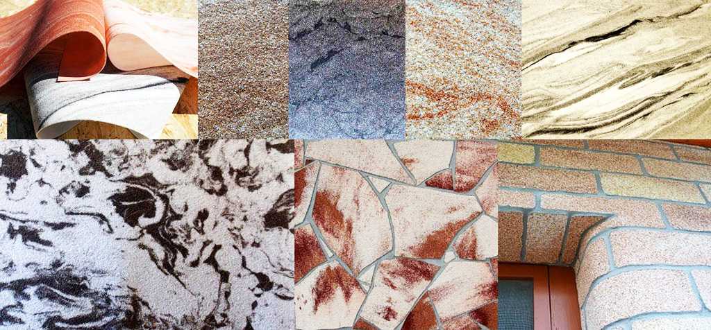 Гибкий камень режется ножницами по металлу; им можно обводить криволинейные поверхности (справа внизу на рис.). Недостаток данного материала – всегда шероховатая поверхность; получать полированный гибкий камень пока еще никто не научился. Монтировать гибкий камень на базовую поверхность можно разными способами, см., напр. след. сюжет: