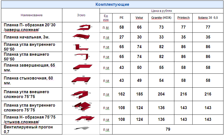 В продаже можно найти виниловый сайдинг, который ещё называют винилит, под корабельную доску, обшивку «ёлочка» или панель блок-хауса. Фактура и расцветка материала также может быть разной. Помимо этого, в комплекте к каждой расцветке идут доборные элементы: углы, стартовые, соединительные, торцевые и финишные профили, отливы, софиты.