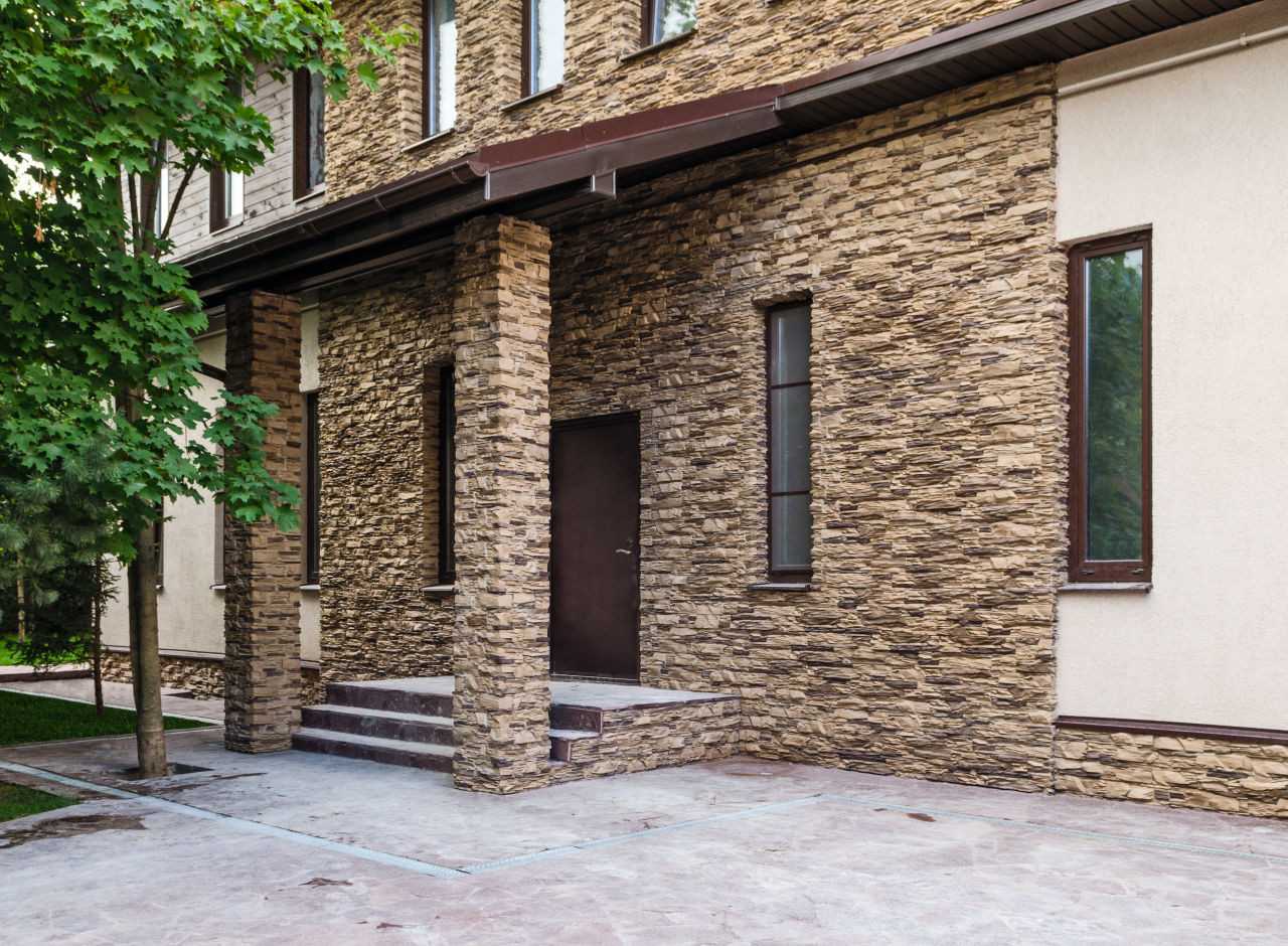 - Камень — для облицовки зданий используют мрамор, базальт, гранит и другие породы. Отличаются природным оттенком, большим разнообразием текстур, но стоят дороже иных моделей.