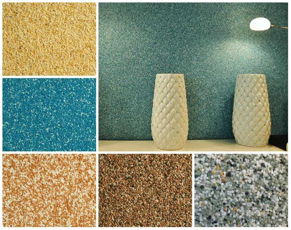 Чтобы придать покрытию стен разную фактуру и цвет, в составе декоративного покрытия могут быть включены крошки: