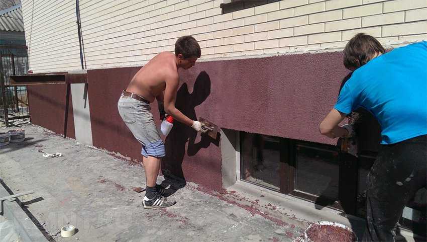 После подготовки инструментов и материалов можно приступать к основному этапу выполнения работ. Отделка фасада мраморной штукатуркой производится в несколько этапов. Подробно о каждом из них мы расскажем дальше.