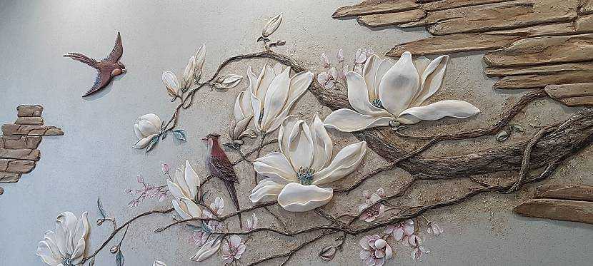Картины из шпаклевки придают интерьеру индивидуальность и изысканность. Дизайнеры используют в оформлении пространства объемные панно из самых простых материалов, таких как шпаклевка. Если хочется творчески декорировать стену, можно выполнить подобный рельеф самостоятельно. Главное — иметь небольшие навыки в рисовании и хорошую фантазию.