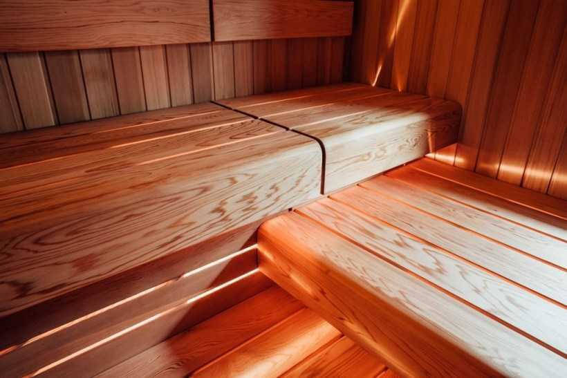 - Лиственница. Является очень прочной и обладает низкой теплопроводностью, что актуально для бани. Она выделяет тонкий и успокаивающий аромат даже при небольших температурах. Лиственница отличается красивым цветом, но, как и дуб, довольно сложна в обработке.