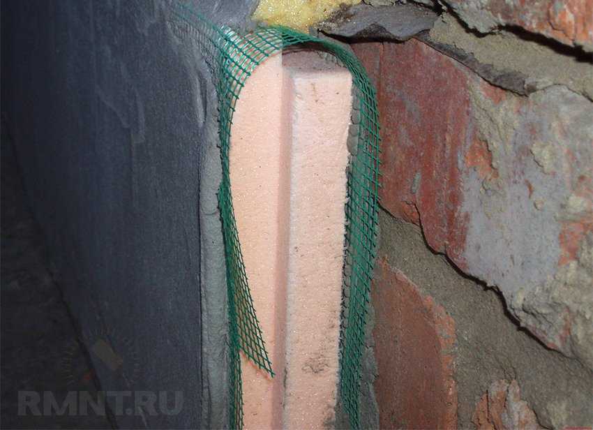 - На поверхности закрепляется армирующая сетка, которая будет препятствовать растрескиванию отделки. Лучше всего использовать вариант из стекловолокна;