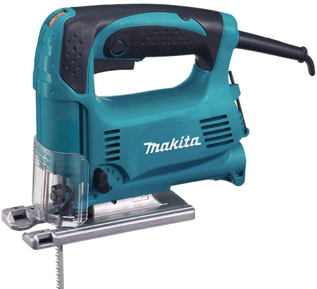 - Электролобзик. Инструмент необходим для резки плит. Несмотря на податливость ламината, использование других приспособлений для резки нежелательно, поскольку срез может получиться неровным, и материал будет испорчен. В качестве альтернативы может использоваться ножовка по дереву или болгарка;