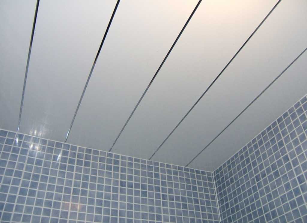 Если для облицовки стен используются ПВХ панели, тогда и потолок рекомендуется отделывать этим же материалом.