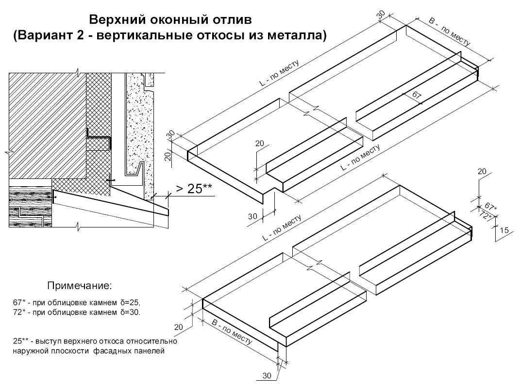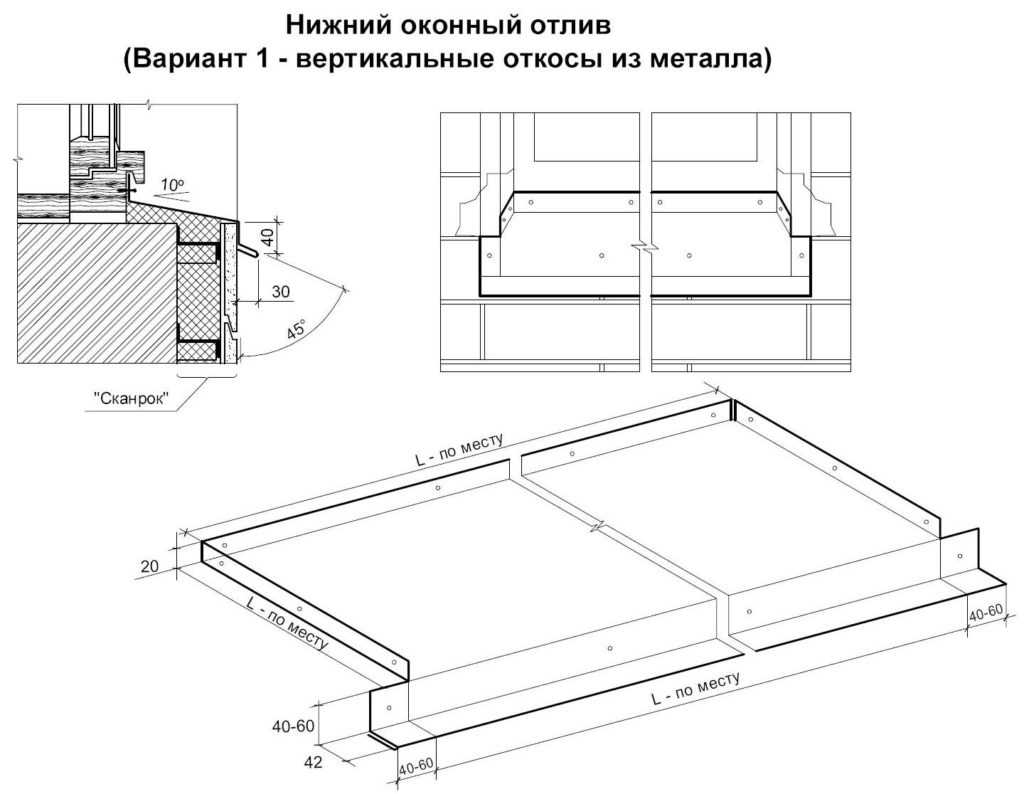 Тем не менее, любой отлив имеет схожую конструкцию, состоящую из следующих элементов: