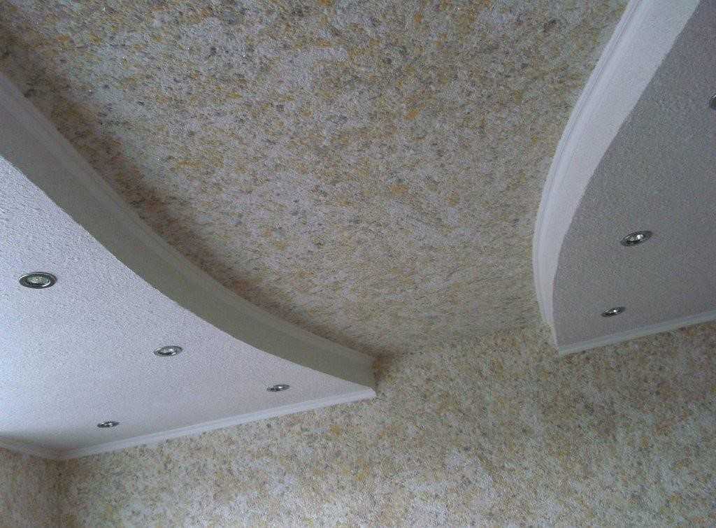 Поклейка жидких обоев на потолке дает следующие преимущества: