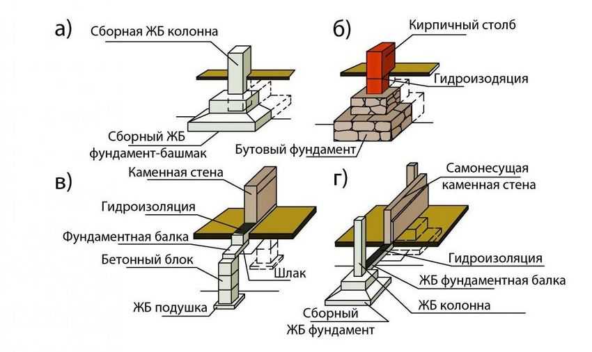 Устройство столбчатого фундамента из различных материалов: монолитного железобетона, бутового камня, бетонных блоков и сборного железобетона