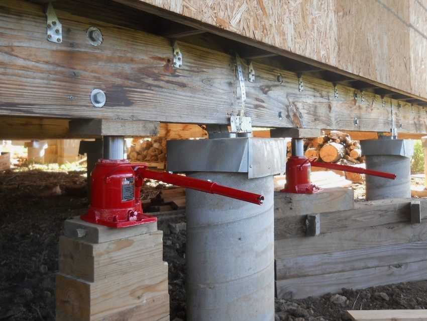 Если фундамент сильно поврежден и нуждается в замене, потребуются домкраты, которые помогут приподнять строение