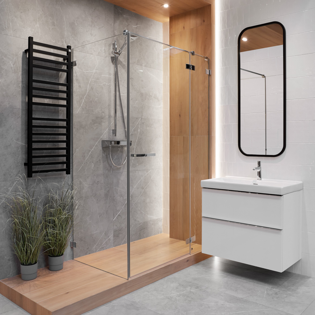 Кроме того, большинство производителей предлагают стекло, дополнительно покрытое покрытием, которое защищает их от коррозии и облегчает очистку. Благодаря этому вы избежите неприглядных пятен от воды и мыла. Как и в случае с акрилом, стекло может быть прозрачным, матовым, рельефным или цветным.