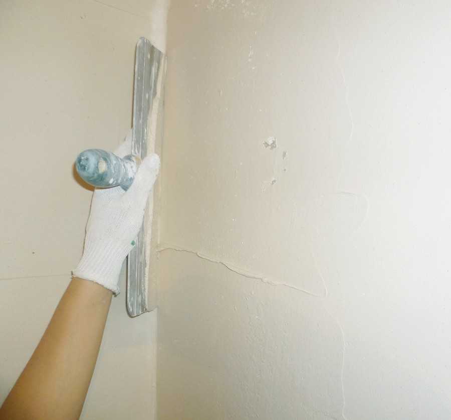 Нанести гипсовую шпаклевку, а затем её отшлифовать не составит труда. К положительным сторонам относят и безопасность данного материала. Обычно его используют для стен, на которые в дальнейшем собираются наносить краску.