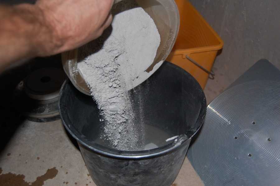Если вы приобрели сухой материал, то необходимо правильно растворить его, чтобы его консистенция напоминала сметану. Чтобы правильно замесить смесь вам понадобится небольшое пластиковое ведро. Его нужно заполнить водой комнатной температуры.