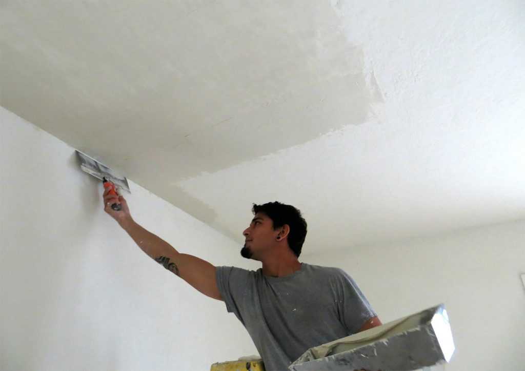 - Главный недостаток – при наличии серьёзных и глубоких дефектов на плите перекрытия, требуется повышенный расход материала, так как штукатурка будет наноситься в несколько слоёв.