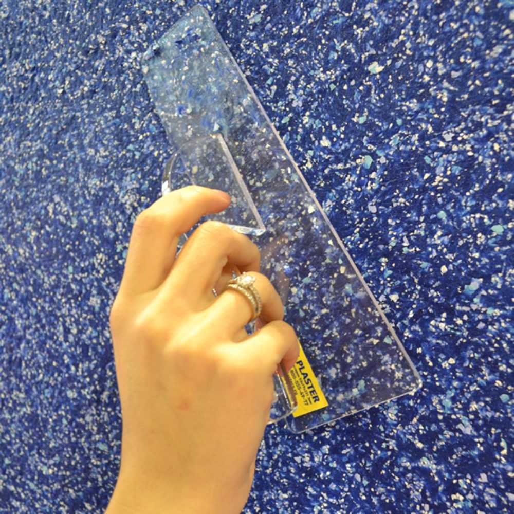 - Пластиковая. Бюджетный вариант. Ее легко поцарапать и вывести из строя. Из достоинств следует отметить малый вес. Кельму из прозрачного пластика применяют для работы с жидкими обоями.