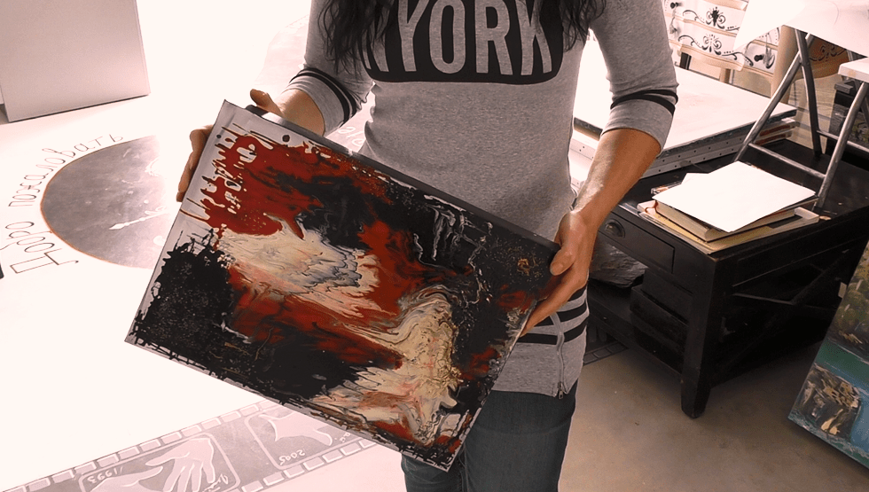 При нанесении краски не только растекаются, но и перемешиваются друг с другом, создавая новые оттенки, разводы и нечеткие границы. Получается немного похоже на типичную акварель, только лаковую.